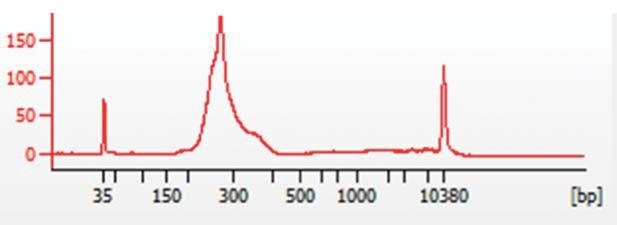 Figure 1. Representative Bioanalyzer trace showing chromatin sample size distribution between 200 and 300bp.