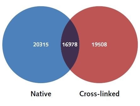 mapped to their closest gene loci (+/-5000 bp distance to the TSS to establish which peaks correlate to each gene), and the uniquely identified genes were compared between both X-linked and N-ChIP samples. As shown in Figure 4, 20,315 uniquely mapped genes and 19,508 unique gene loci were shown to be associated with H3K4me3 in the N-ChIP samples and H3K4me3 in the X-linked ChIP samples, indicating as high as 90% resemblance between the samples.