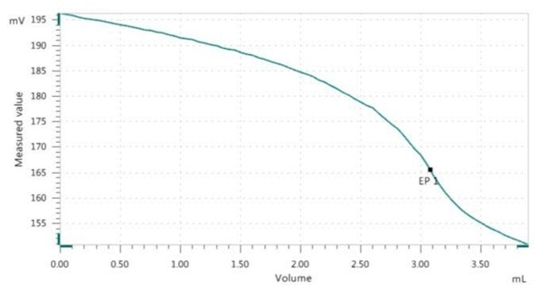 Titration is then carried out using the indicator Cu-ISE and the titrant NTA with 0.3 mol/L concentration until after the equivalence point is reached.
