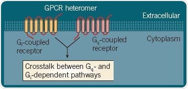 Furthermore, more recent findings reinforce the hypothesis that family A GPCRs form heterodimers or oligomers of an even higher order. Some examples of GPCR heterodimers/ heteromers, which are potentially connected to schizophrenia and its treatment, include dopamine D2-adenosine A2A, 5-HT2A-mGlu2, d and µ-opioid-α2A-adrenergic receptor complexes.