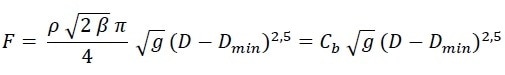 • The grains experience a free fall prior to passing through the orifice, i.e., vout = √2 g β D . This relation comes from the notion that the jamming mechanism is because of the formation of a semi-spherical arch before the orifice. If this arch has a standard size proportional to the aperture, β = 0.5 is obtained. To be more wide-ranging, the parameter β can be a free parameter.