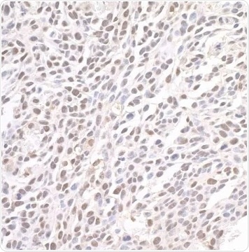Figure 2. Detection of mouse BRD4 by immunohistochemistry. Sample: FFPE section of mouse CT26 colon carcinoma. Antibody: Affinity purified rabbit anti-BRD4 (Cat. No. A301-985A100 Lot7) used at a dilution of 1:1,000 (1 µg/mL). Detection: DAB. View Bethyl's entire catalog of BRD4-related antibodies. Image Credit: Bethyl Laboratories Inc.