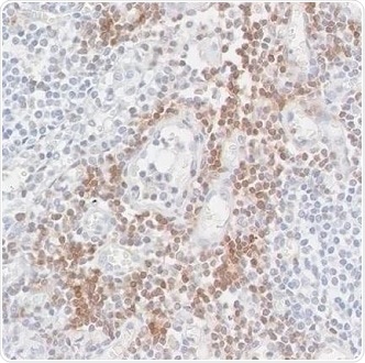 Figure 1. Detection of CD247/CD3Z in an FFPE section of a metastatic lymph node from lung cancer origin by IHC. Antibody: Rabbit anti-CD247/CD3Z recombinant monoclonal antibody [BL-336-1B2], Cat# A700-017. Detection: DAB. Image Credit: Bethyl Laboratories Inc.