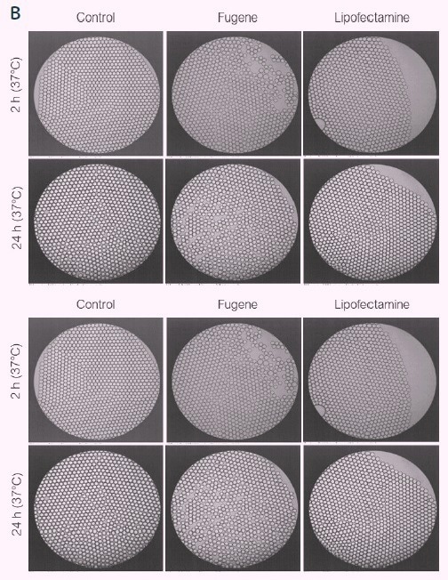 After 2 and 24 hours of incubation at 37 °C, the stability of the picodroplet was then evaluated under a microscope (Figure 1B). According to the findings, various transfection reagents have no effect on picodroplet production or stability in any of the studies.