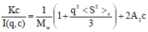 where I(q,c) is the excess Rayleigh scattering ratio (in units of cm-1), the quantity assessed by the light scattering instrument, identical to its value from the polymer solution subtracting the pure solvent’s value.