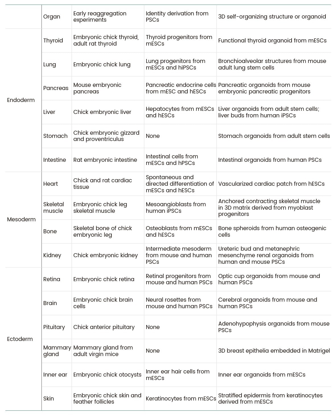 Table 1. In vitro self-organizing tissues of various organs8. Source: Sino Biological Inc.