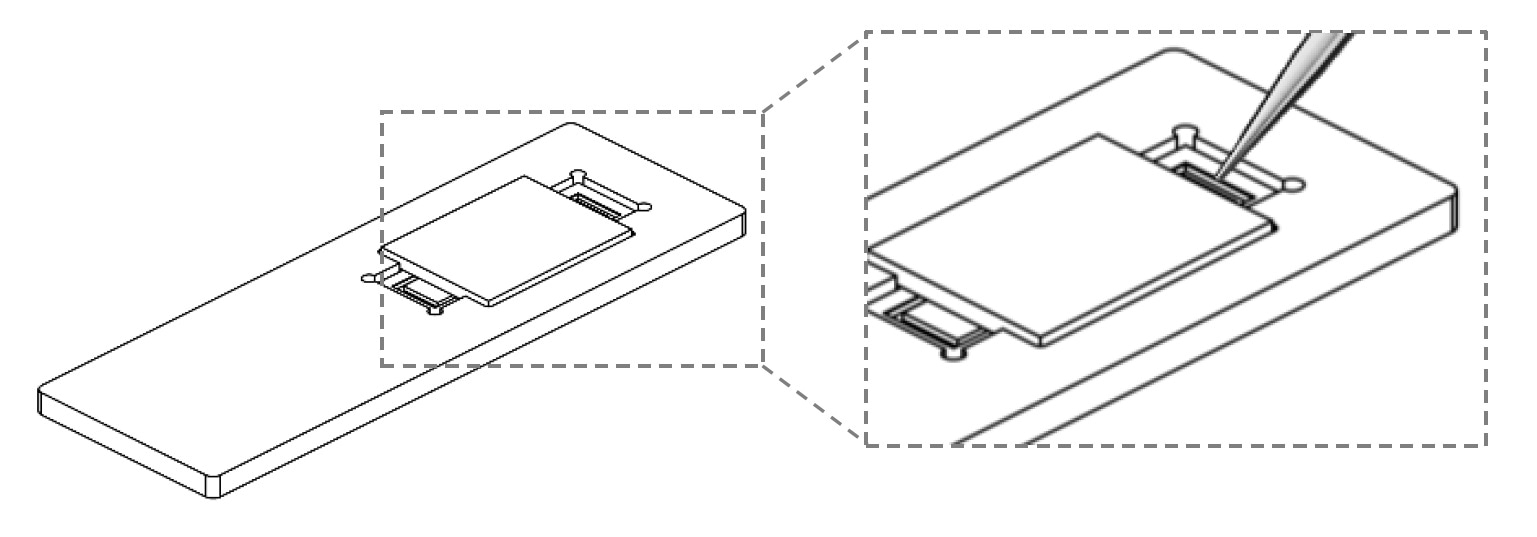 - Place a clean LUNA™ Reusable Slide Coverslip carefully on top of the LUNA™ Reusable Slide chamber.