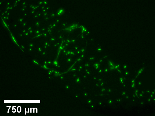 Electrically conductive TissueFab® bioink Conductive Vis/405 nm, low endotoxin, is a bioink for 3D bioprinting applications. It aims to provide the best possible cell microenvironment for neural, muscular, and cardiac cells so they can transmit electrical impulses, improving cell communication and network creation.