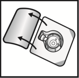 6. Turn the package over. Press straight down to fully insert the clear plastic spike