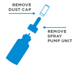 1. Remove the clear dust cap. Gently grip the sides of the white plastic spray tip and pull upwards to lift the plastic spray away from the glass bottle.