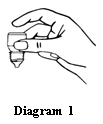 4. Hold the bottle upside down in one hand between your thumb and middle finger (see Diagram 1).