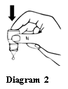7. Place the dropper tip close to, but not touching, your eye. Release one drop into the pouch/pocket formed between your eye and eyelid by gently tapping or pressing the base of the bottle with your forefinger (see Diagrams 2 and 3).