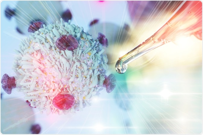 T cells are collected from the patient’s blood and then genetically engineered to produce cell surface receptors, which are referred to as chimeric antigen receptors (CARs). CARs enable the T cells to recognize specific antigens present on the surface of cancerous cells. This population of CAR T cells is expanded in the laboratory until it numbers in the billions and then it is infused into the patient. The T cells then multiply in the body and, by using their genetically engineered receptor, subsequently attack cells that present the tumor-specific antigen on their surface.