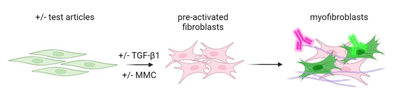 Modeling this process in vitro enables the evaluation of potential anti-fibrotic therapeutics for their capacity to reduce or reverse fibroblast-to-myofibroblast transition (FMT).