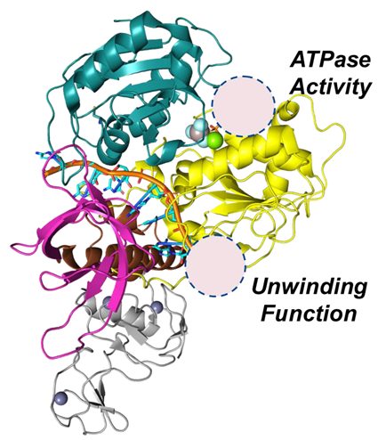 • 1B domain plays a role in modulating helicase activity.