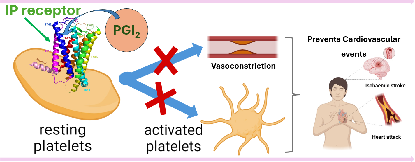 - IP receptor is the first and only cell surface receptor on human platelets that prevents platelets from aggregating otherwise may lead to pathological thrombus formation.