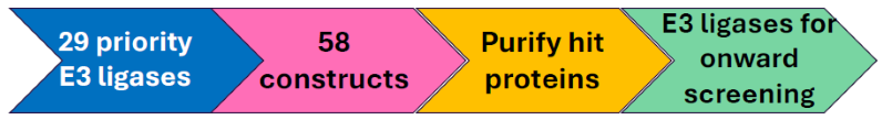 Complete protein purification for crystallisation of the hits and select E3 ligases for onward screening efforts.