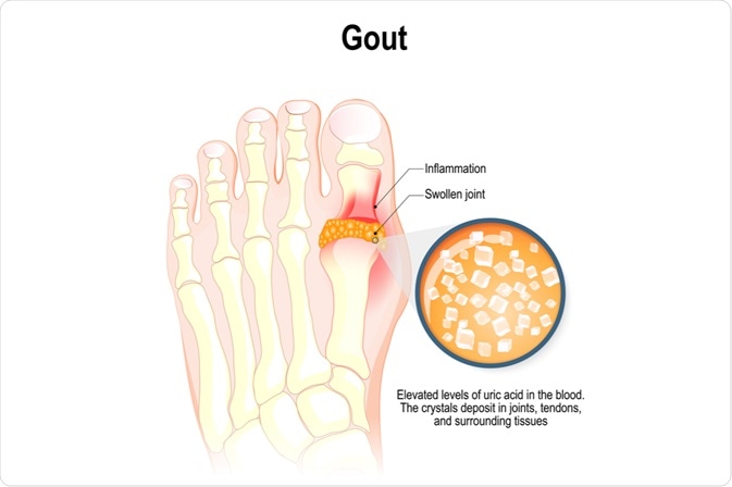 Gout is a form of arthritis that causes inflammation and severe pain in joints such as the knee, foot, ankle or wrist, and particularly in the base of the big toe.