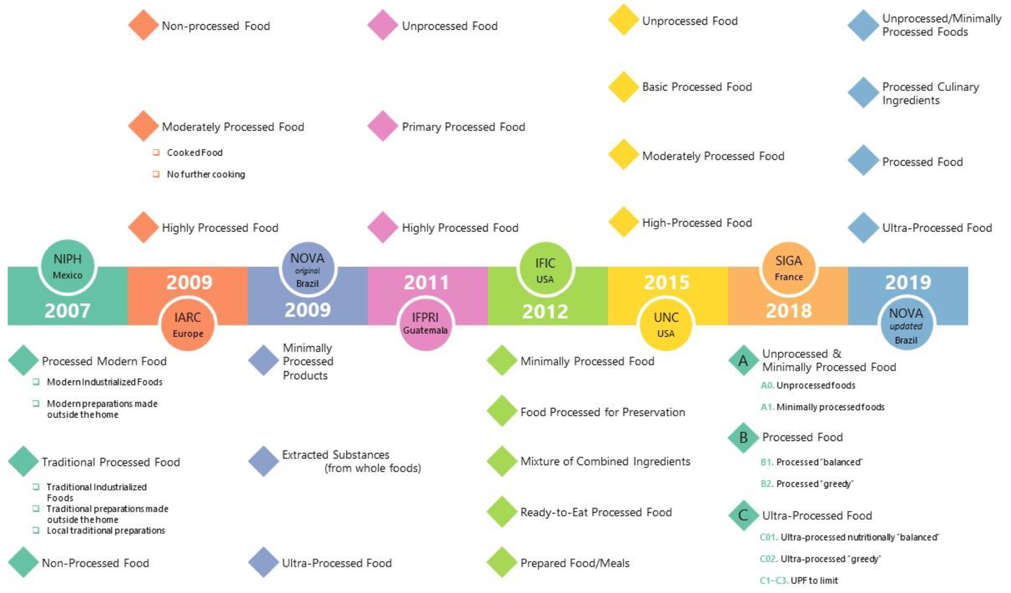 - Monteiro, C. A., Cannon, G., Levy, R. B., Moubarac, J. C., Louzada, M. L., Rauber, F., Khandpur, N., Cediel, G., Neri, D., Martinez-Steele, E., Baraldi, L. G., & Jaime, P. C. (2019). Ultra-processed foods: what they are and how to identify them. Public Health Nutrition, 22(5), 936–941. DOI: 10.1017/S1368980018003762, https://www.cambridge.org/core/journals/public-health-nutrition/article/ultraprocessed-foods-what-they-are-and-how-to-identify-them/E6D744D714B1FF09D5BCA3E74D53A185