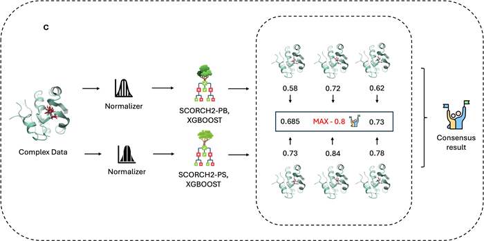 SCORCH2 uses two distinct XGBoost1 models trained on separate datasets for heterogeneous consensus scoring. Hyperparameter optimization was conducted using Optuna2, targeting AUCPR maximization for imbalanced datasets.