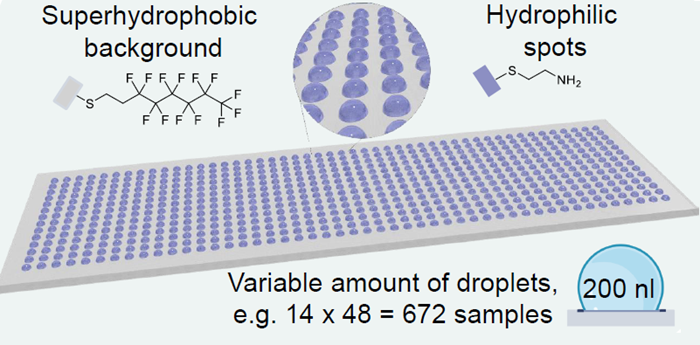 The platform was a superhydrophobic background made up of a variable amount of droplets.