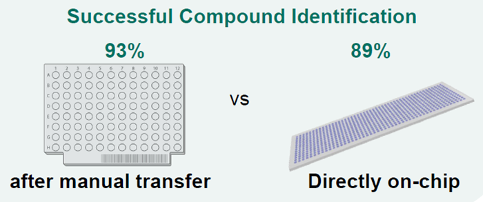 Successful compound identification of 93 % after manual transfer, and 89 % directly on-chip.