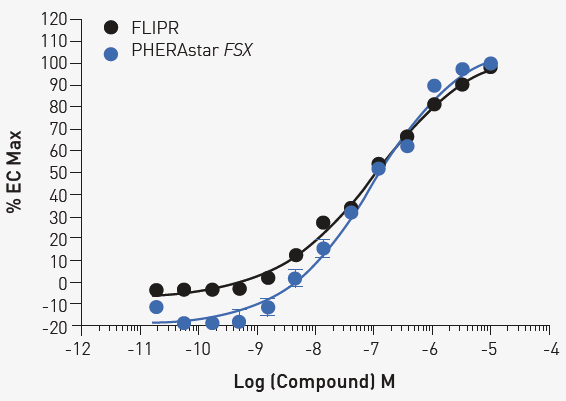 Fig 3. Concentration response under optimized conditions 1000 cells were treated with the indicated concentration of ML297 for 10 minutes. Comparable results are obtained with FLIPR or PHERAstar FSX. Image Credit: Image courtesy of Sivakumar, M et al., in partnership with ELRIG (UK) Ltd.