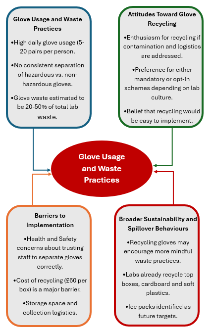 - To explore staff attitudes towards glove recycling, identify barriers and enablers, and assess the feasibility of introducing a glove recycling scheme at the ICR.