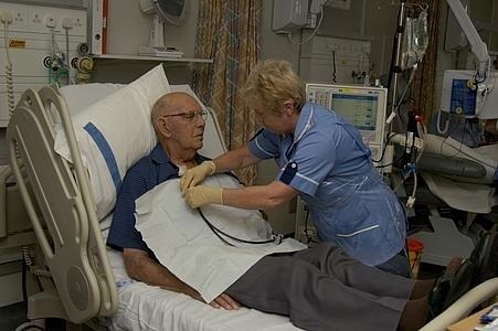 A man receiving kidney dialysis treatment (please note this photo is not taken at Sheffield Teaching Hospitals NHS Foundation Trust)
