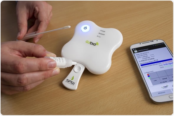 The innovative hand held device developed by the UK-based OJ Bio Ltd. uses specially developed biochips with a dedicated reader and supporting software carried on a mobile phone app or a PC.