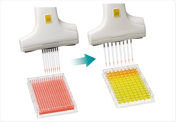 Up until now, scientists working with different sized labware, e.g. microcentrifuge tubes and Agarose gels, had to use a single channel pipette in order to pipette from the tubes into the gel’s cavities.