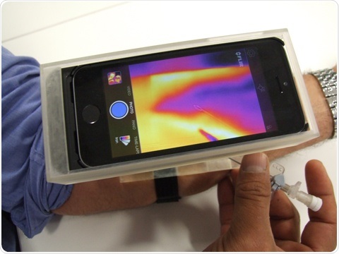 Alternatively, off-the-shelf low-cost infrared cameras can be plugged into the smartphone and a cold press can be applied to reduce the temperature of the patient’s arm to make the veins more visible.