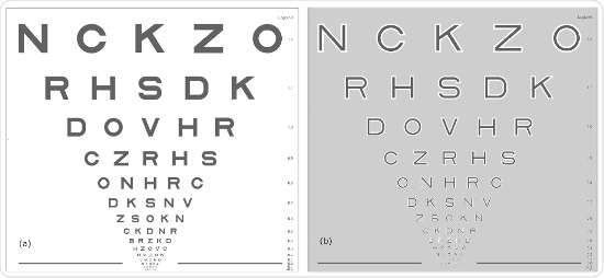 a) Conventional chart; b) Moorfields Acuity Chart.