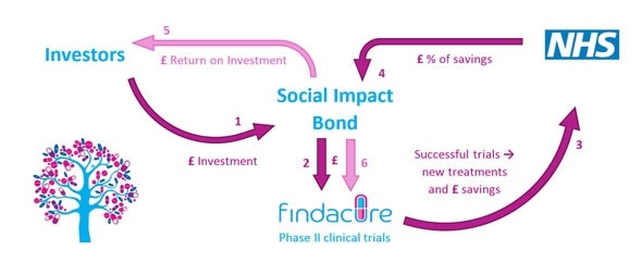 To fund this work Findacure is trying to establish a new funding mechanism, called a social impact bond, which aims to use social finance and health system savings to fund drug repurposing research.