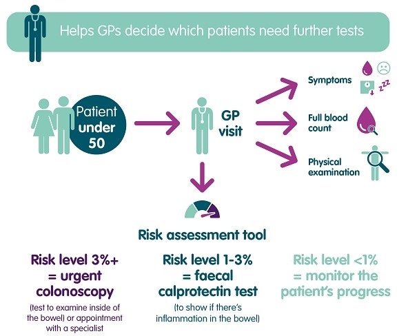Can you please introduce the new tool aiming to support GPs to identify the symptoms of a serious bowel condition in patients under 50 years old?