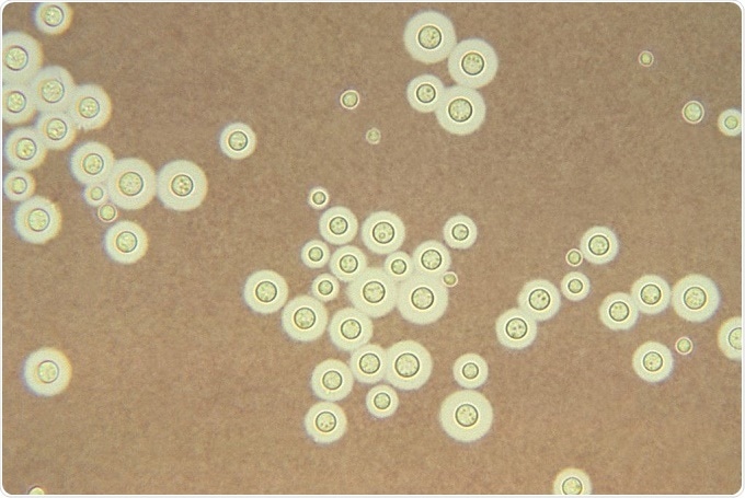 This photomicrograph depicts Cryptococcus neoformans using a light India ink staining preparation. Credit: Patho / commons.wikimedia.org