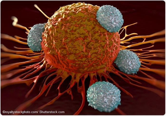 T-cells attacking cancer cell illustration of microscopic photos.