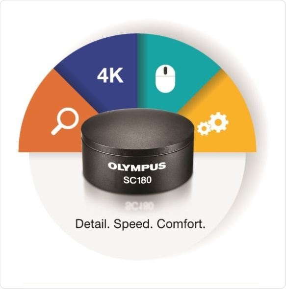 With the SC180 camera Olympus makes 4K Microscopy accessible to more users than ever before. 4K Microscopy enables users to get the same level of detail on the screen as through the oculars and show true-to-life structures and colors for enhanced sample observation.