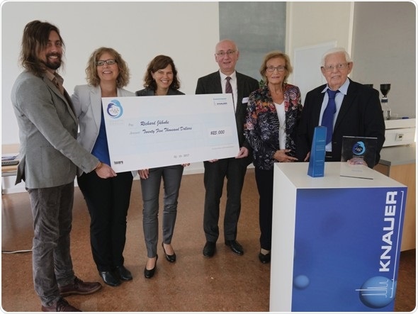 This year, the international expert jury selected pharmacist and economist Dr. Richard Jähnke from Frankfurt as the winner. Jähnke’s project focuses on the fight against the spread of inferior and counterfeit medicines in developing countries by providing a set of easy-to-use tests for more than 85 active ingredients. Counterfeit drugs can be fatal, often because they don’t work as promised. Jähnkeaccepted the award with great pleasure from Rich Whitworth, Content Director of the Texere Publishing (the publisher of The Analytical Scientist), and Roswitha Knauer, founder of KNAUER.