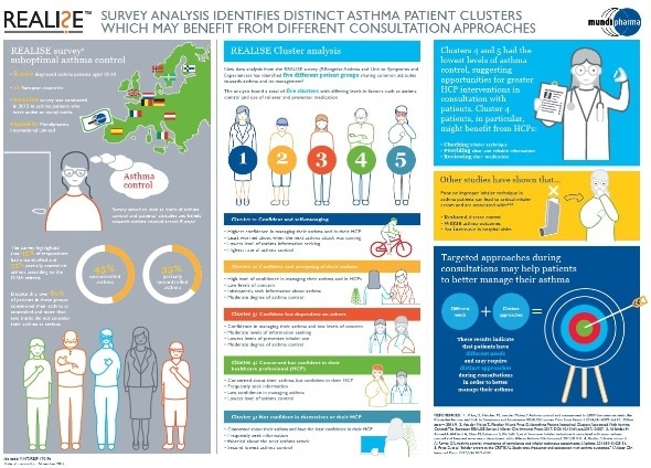 New data analysis from the Mundipharma International Limited sponsored REALISE™ survey (Recognize Asthma and LInk to Symptoms and Experiences), published today in the Journal of Allergy and Clinical Immunology: In Practice has identified different patient groups sharing common attitudes towards asthma and its management. The analysis found a total of five clusters with differing levels in factors such as asthma control and use of reliever and preventer medication. These results indicate that patients have different needs and may require distinct approaches during consultations in order to better manage their asthma.