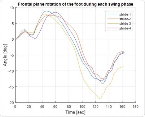 Frontal plane foot angle during the gait cycle. |