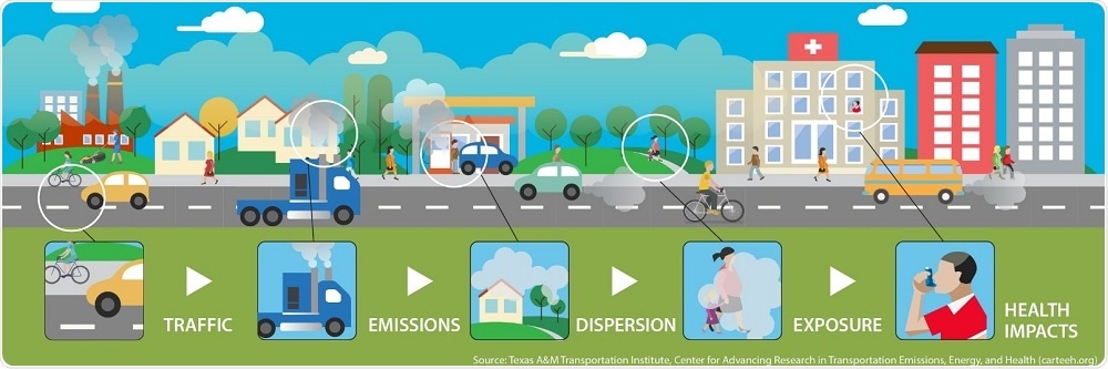 Full chain between transportation sources and health impacts. Credit: CARTEEH.org.