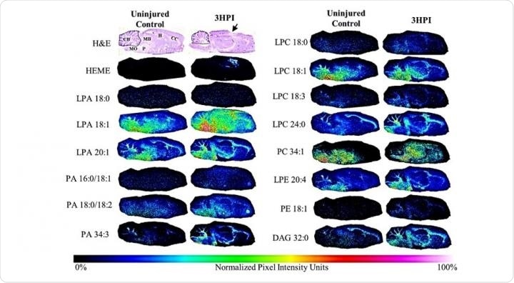 The team used matrix-assisted laser desorption ionizing imaging mass spectrometry to acquire data on LPA, major LPA metabolites and haemoglobin at 1 and 3 hours after controlled cortical impact injury in a rodent model.