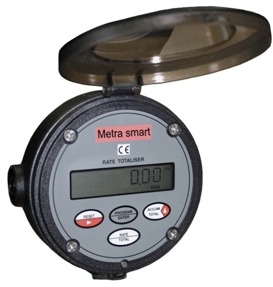 The battery powered Metra-Smart displays re-settable total, accumulated total and flow rate in engineering units as programed by the user. Simple pin-protected flow chart programming with prompts are used to guide users through the entire programming routine. The battery life of the Metra-Smart is 10 years + to provide you with long peace of mind.