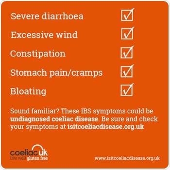 National charity Coeliac UK, is calling on greater awareness of the similarity of symptoms and urges anyone with IBS to ask their GP for a celiac disease blood test, if they have not already had one.