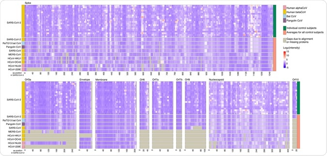 The team also found that anti-SARS-CoV-2 antibodies cross-reacted with homologous epitopes across the proteomes of other human and animal coronaviruses.