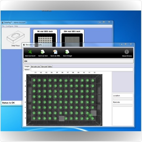 The DataPaq™ Express scanner is easy to set-up and can be ready to use only a few minutes after taking it out of the box. The fast full-rack scanner arrives fully calibrated and is ready to read all makes of SBS format 2D barcoded racks and tubes. Powerful DataPaq™ software makes it simple to export data to Excel, XML or text/CSV, and scanned images can also be saved. The DataPaq™ software can also connect with Oracle, SQL Server, MySQL, Postgres and other databases.