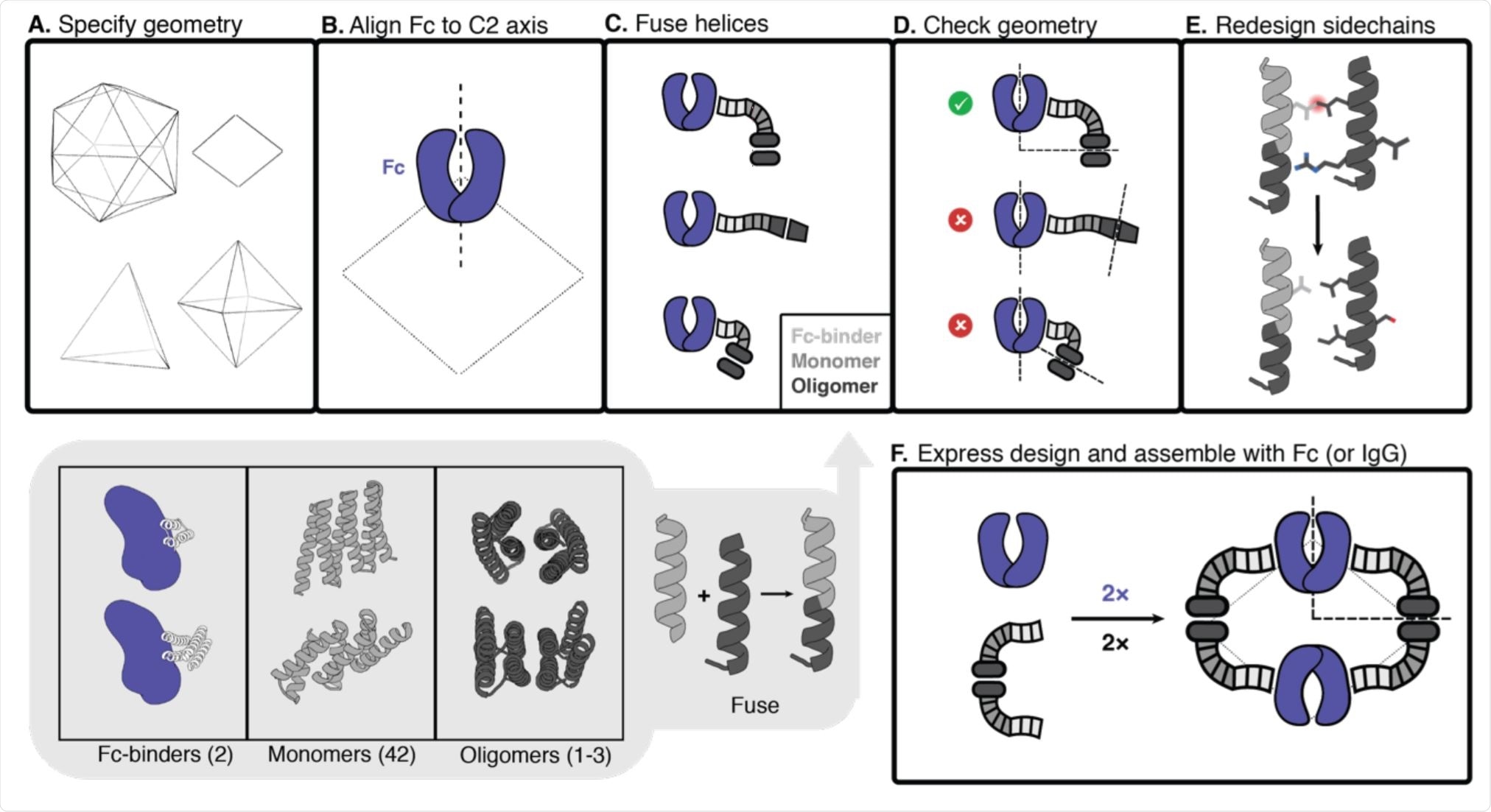 In this study, a general computational method for antibody cage design uses the symmetry of the protein building blocks to align with a larger target architecture. First, they design an antibody-binding, nanocage-forming protein that precisely arranges IgG dimers along the two-fold symmetry axes of a target architecture.