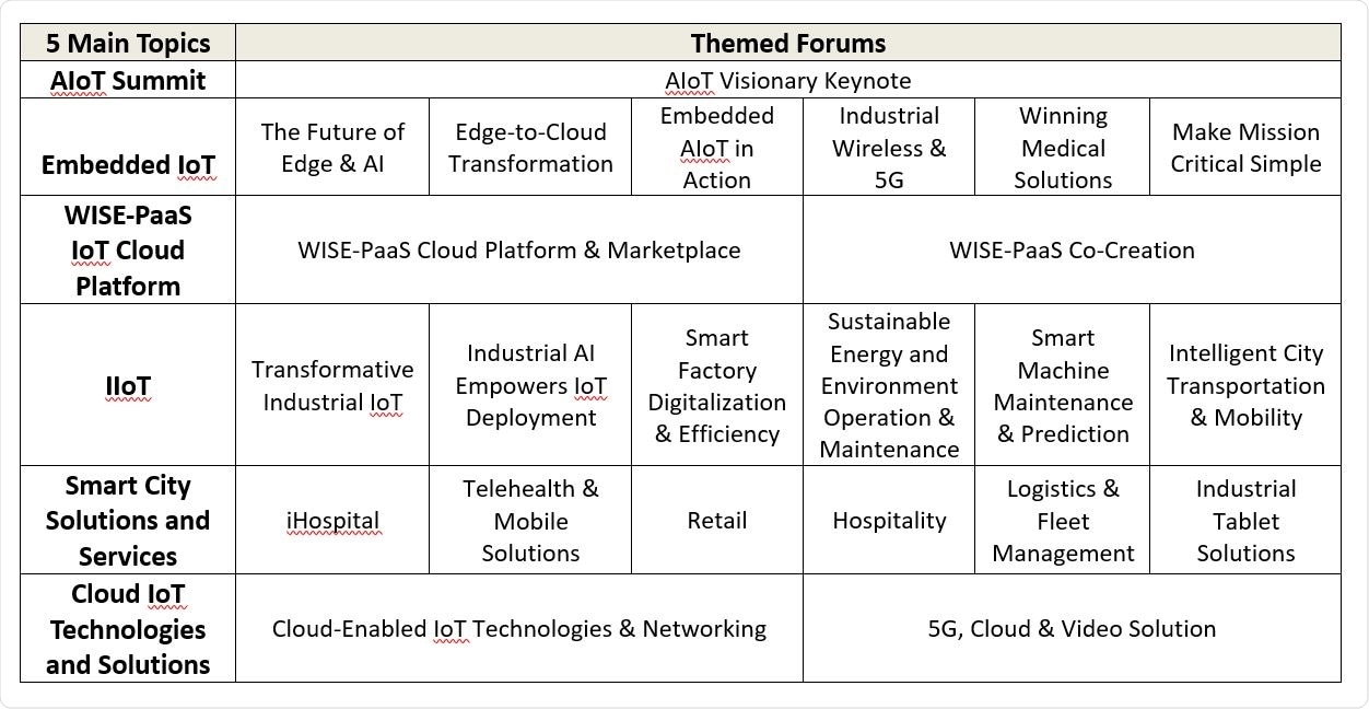 Having AIoT Vision as its theme, the forum will be held from February 24th to May 6th and center around five main topics: Industrial IoT, Embedded IoT, IoT Cloud Platform - WISE-PaaS, Smart City Solutions and Services, and Cloud IoT. In total, more than 20 online forums will be hosted over the next three months.