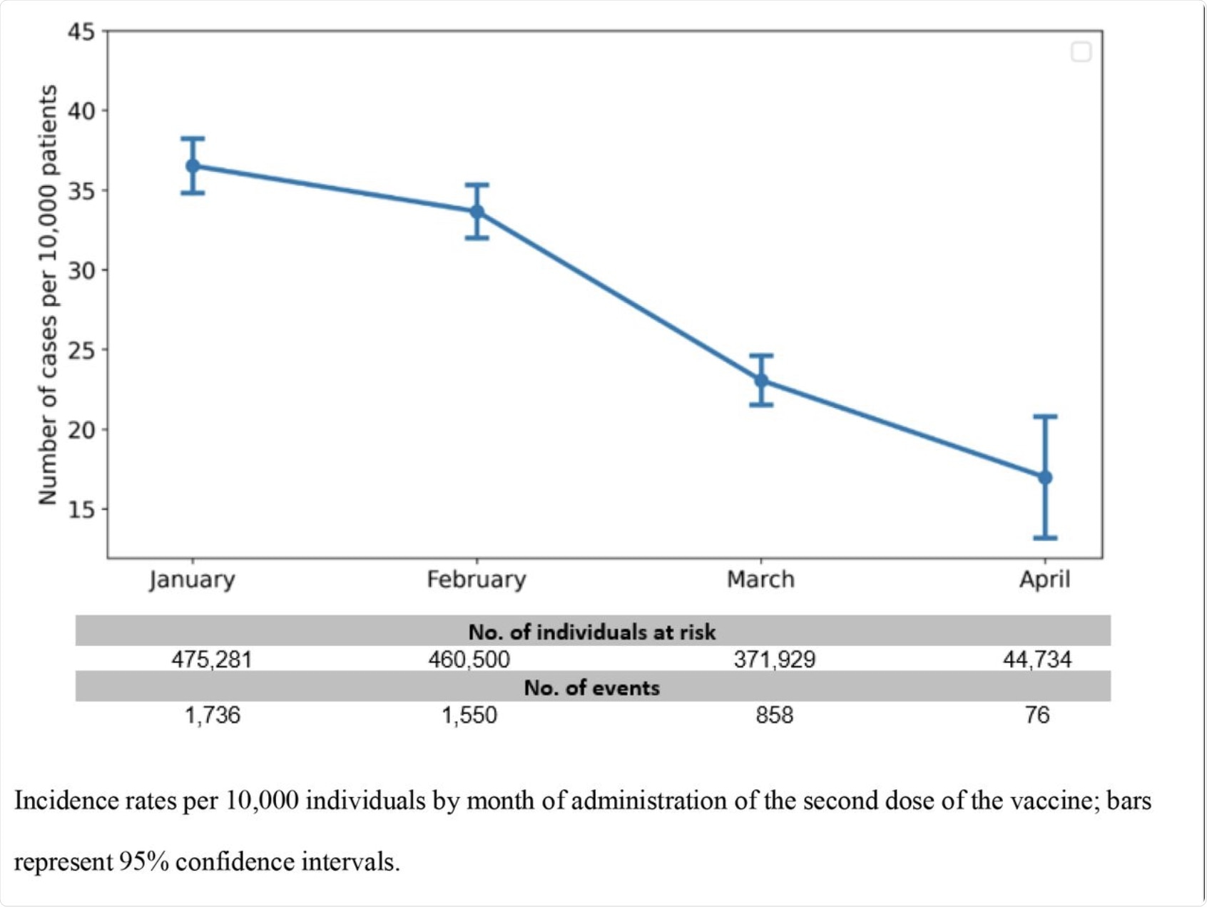 In the first model, researchers adjusted comorbidities and reported that 53% of early vaccinees had an increased risk of breakthrough infection. Similarly, model two also showed a higher risk of breakthrough infections in individuals who received vaccines in the earlier months as compared to the individuals who were vaccinated in later months.